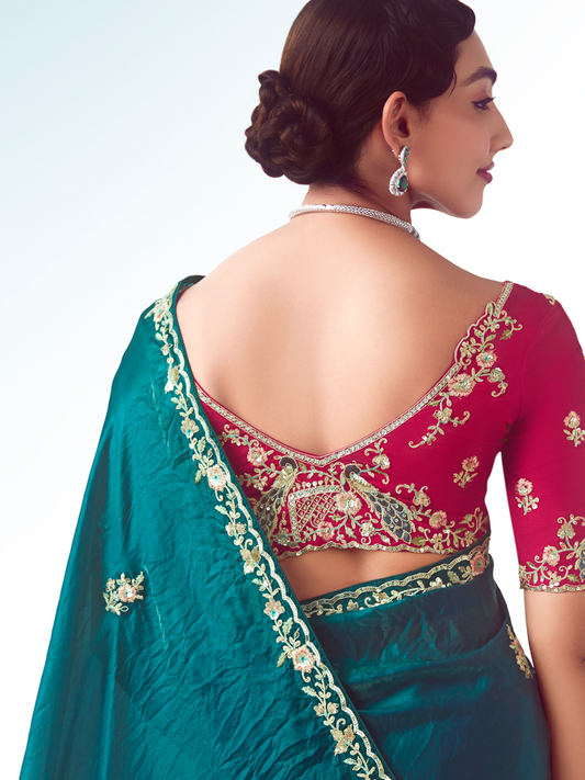 Dhiyona KM Women Teal Silk Saree Partywear Saree