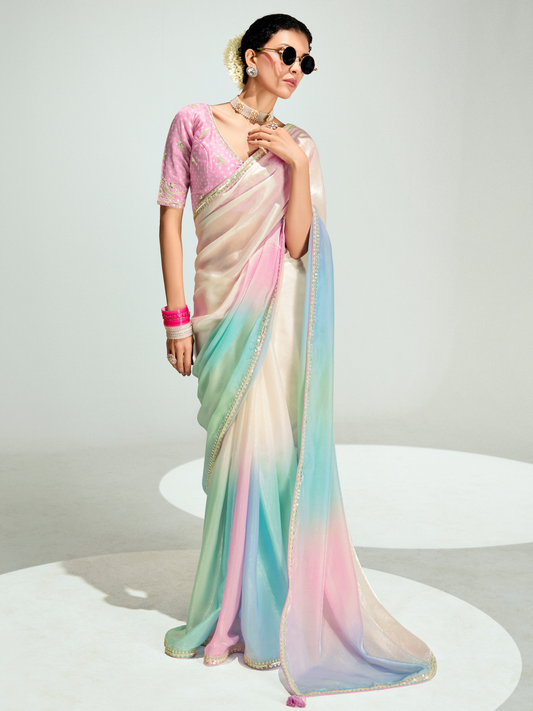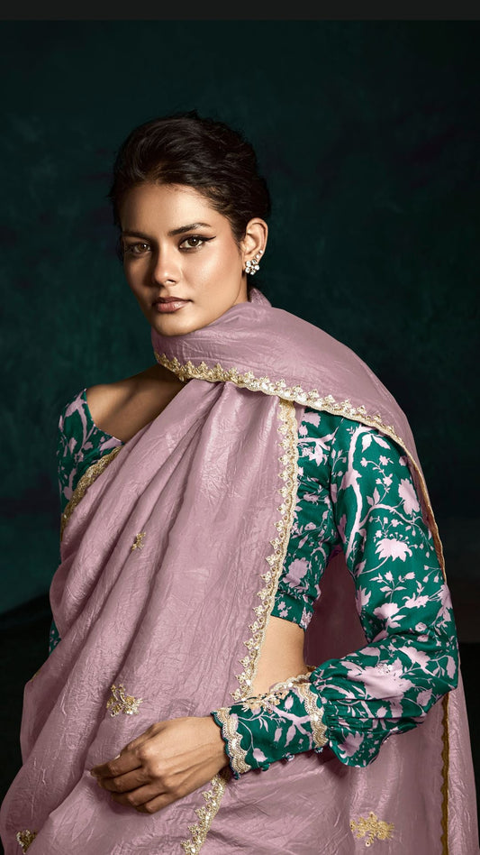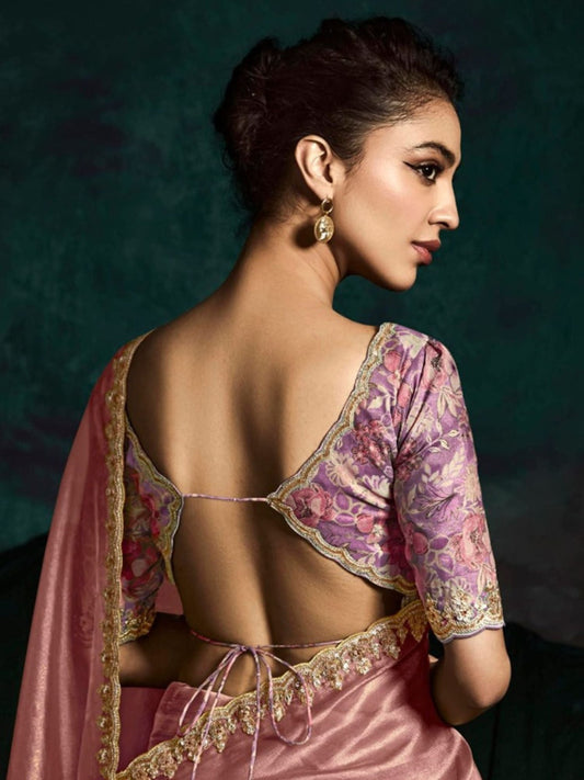 Dhiyona KM Women Elegant Pink Shade Organza Saree With Designer Blouse