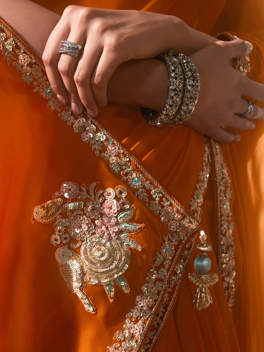 Dhiyona KM Women Orange Saree: Effortless Elegance For Every Occasion