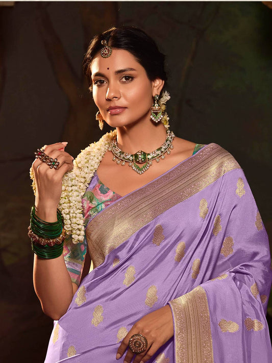 Dhiyona KM Women Embroidered Pure Viscose Dola Silk Purple Traditional Bridal Saree