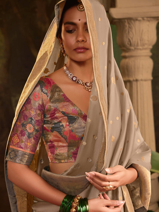 Dhiyona KM Women Elegant Beige Crape Dola Silk Saree