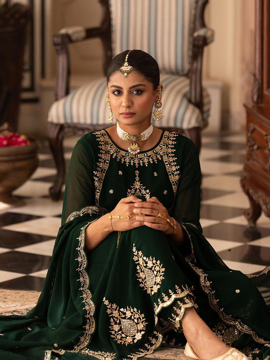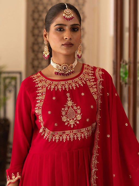 Dhiyona CH Floral Embroidered Pleated Sequinned Anarkali Kurta With Trousers & Dupatta