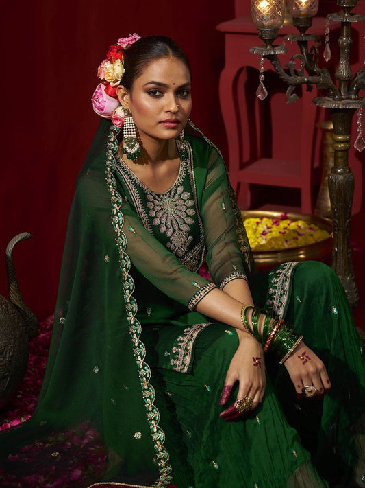 Dhiyona CH Women Ethnic Motifs Embroidered Kurta with Sharara & Dupatta
