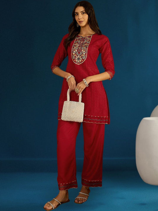 Dhiyona CH Women Ethnic Motifs Embroidered Regular Thread Work Kurti with Palazzos