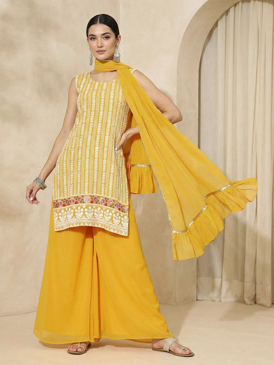 Dhiyona CH Women Ethnic Motifs Embroidered Regular Kurta with Palazzos & With Dupatta