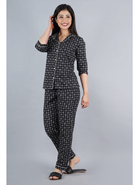 Black Mandarin Collar Ethnic Motifs Printed Regular Kurta with Trousers & With Dupatta Set