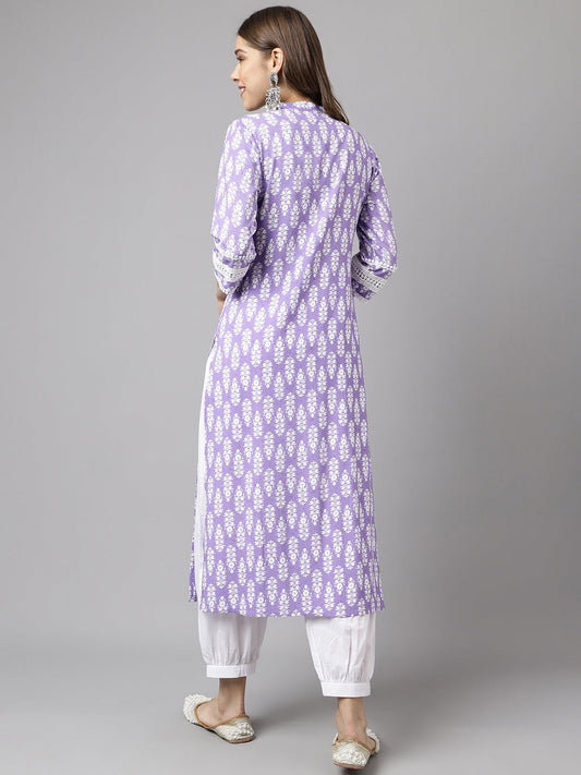 Women's Light Purple Cotton A-Line Kurta with Pant