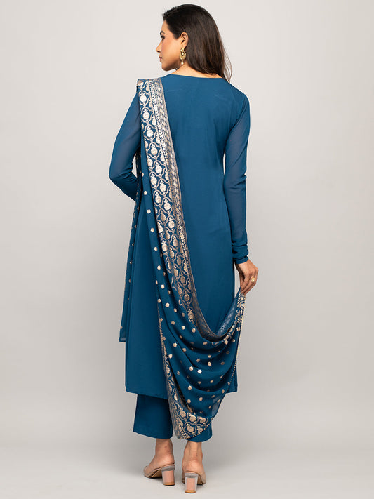 Vendor:Dhiyona FLWomen's Teal Blue Crepe A-line Kurta with Pant and Dupatta
