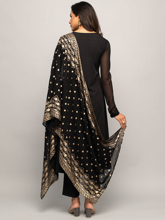 Women's Balck Crepe A-line Kurta with Pant and Dupatta