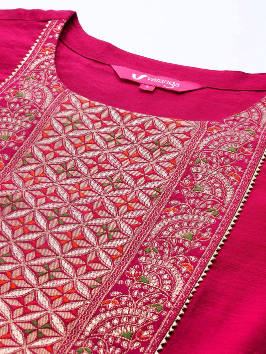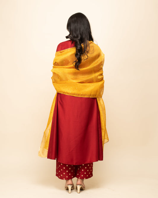 Women's Maroon Viscose Chanderi A-line Kurta with Pant and Dupatta
