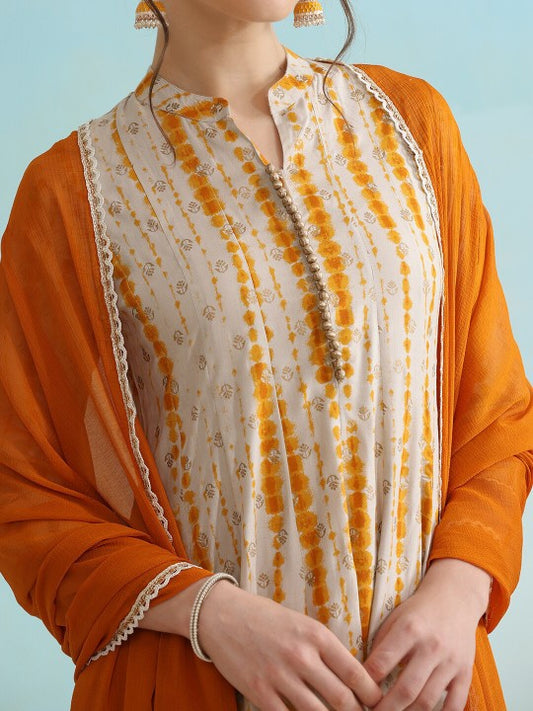 Vendor:Dhiyona FLWomen's Off White Pure Cotton Flared Kurta with Palazzo and Dupatta