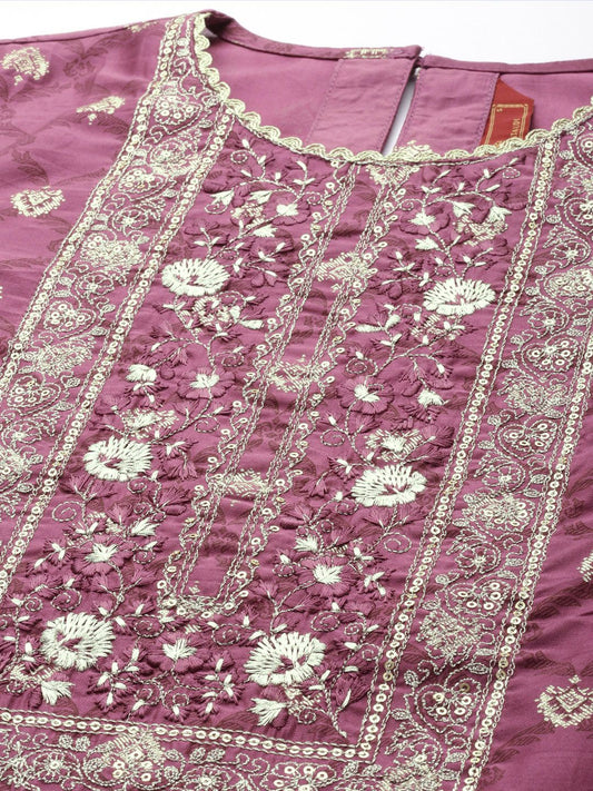 Women Mauve Floral Anarkali Kurta Pant Dupatta Set