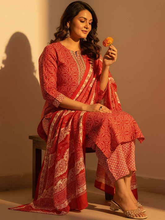 Dhiyona IE Women Printed Regular Pure Cotton Kurta with Trousers & With Dupatta