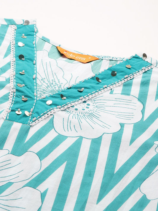 Dhiyona IE Floral Printed Pure Cotton Kurta with Trousers