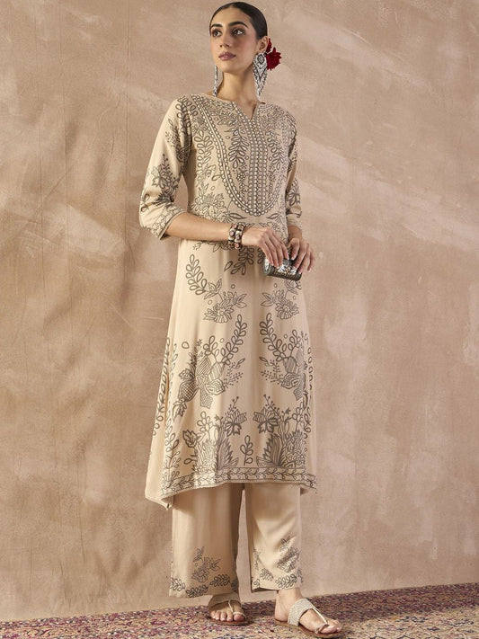 Dhiyona IE Floral Printed Straight Kurta with Trousers