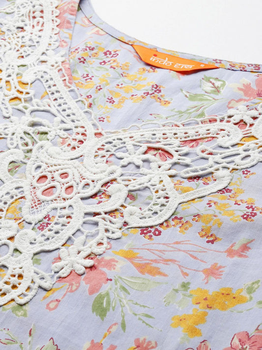 Dhiyona IE Women Floral Embroidered Cotton Kurta with Trousers