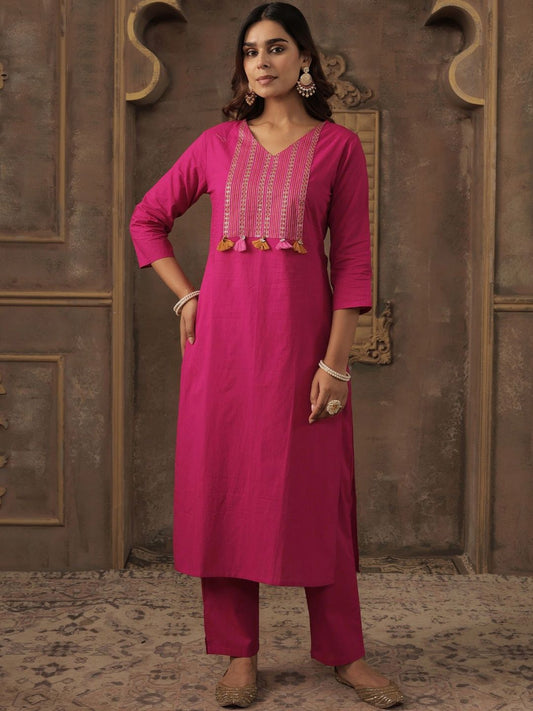 Dhiyona IE Floral Embroidered Thread Work Pure Cotton Kurta & Trousers