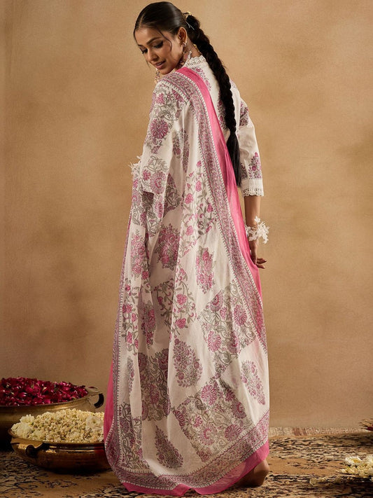 Dhiyona IE Floral Printed Pure Cotton Kurta With Trouser & Dupatta