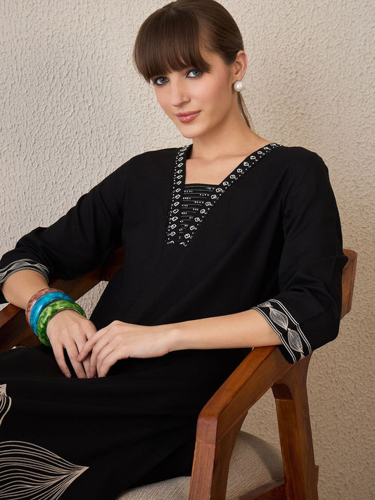 Dhiyona IE Women Geometric Embroidered Kurta with Trousers