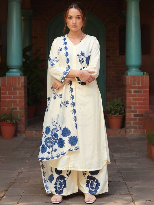 Dhiyona IE Women Floral Printed Regular Kurta with Palazzos & Dupatta Kurta Sets
