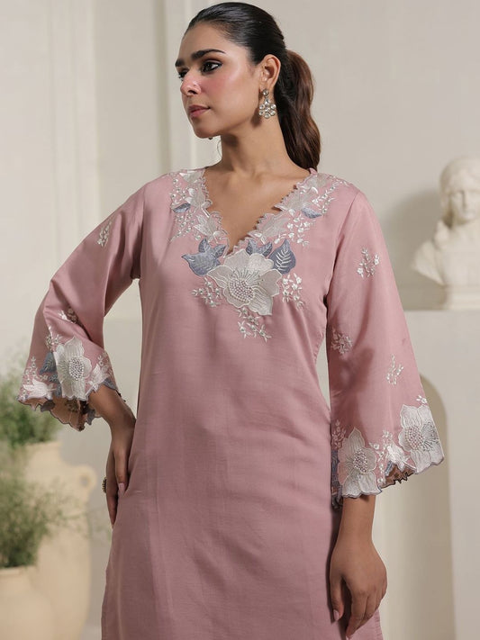 Dhiyona IE Floral Embroidered V-Neck Thread Work Straight Kurta & Palazzos
