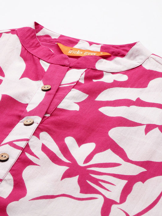 Dhiyona IE Women Floral Printed Regular Beads and Stones Pure Cotton Kurta Set