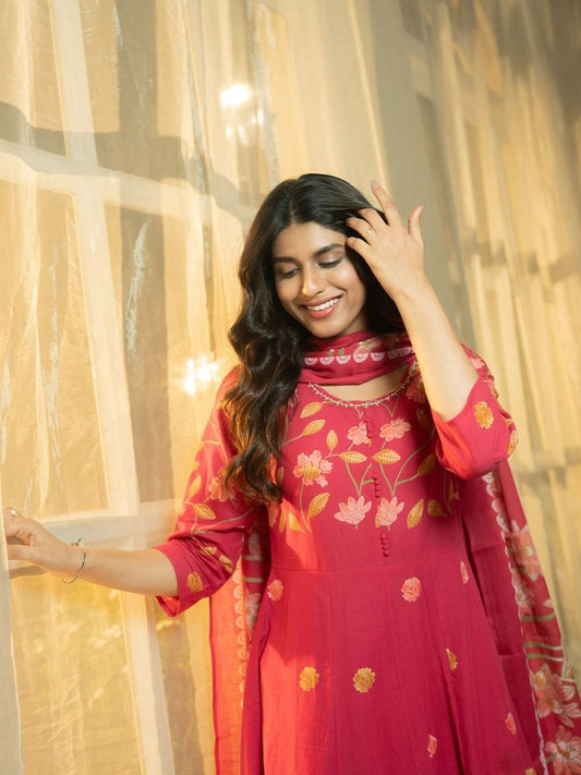 Dhiyona IE Floral Printed Pure Cotton Kurta with Trousers & Dupatta