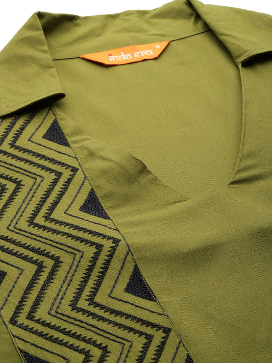 Dhiyona IE Ethnic Motifs Embroidered Thread Work Pure Cotton Straight Kurta With Trousers