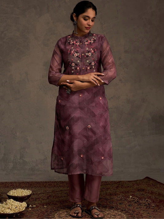 Dhiyona IE Floral Embroidered Sequinned Linen Kurta with Trousers & With Dupatta