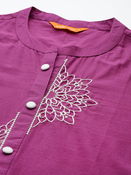 Dhiyona IE Floral Embroidered Thread Work Pure Cotton Kurta with Palazzos