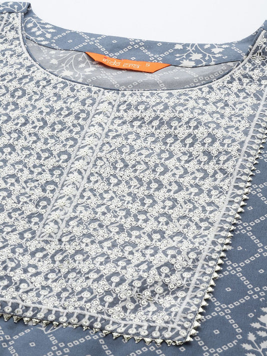 Dhiyona IE Floral Printed Empire Gotta Patti Pure Cotton Kurta With Trousers
