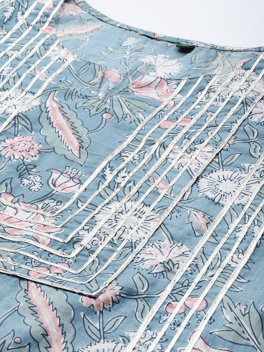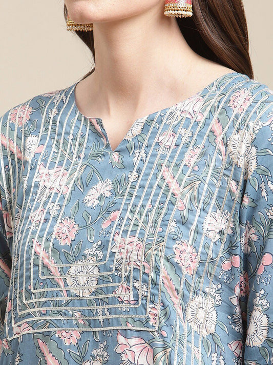 Buy 2 Get 1 FreeVendor:Dhiyona VADhiyona VA Women's Blue Floral Printed Gotta Patti Kurta with Sharara & With Dupatta