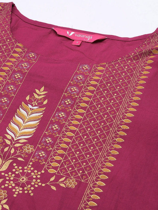 Buy 2 Get 1 FreeVendor:Dhiyona VADhiyona VA Women's Magenta Ethnic Motifs Printed Panelled Kurta with Palazzos