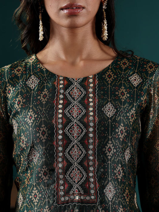 Dhiyona VA Women's Ethnic Motifs Embroidered Regular Chanderi Silk Kurta with Trousers & With Dupatta