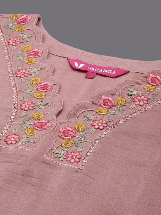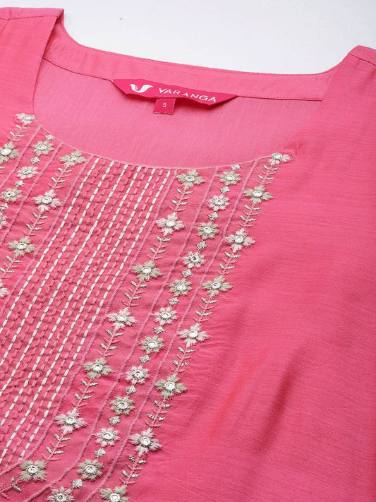 Dhiyona VA Women's Pink Yoke Design Kurta with Trousers & With Dupatta