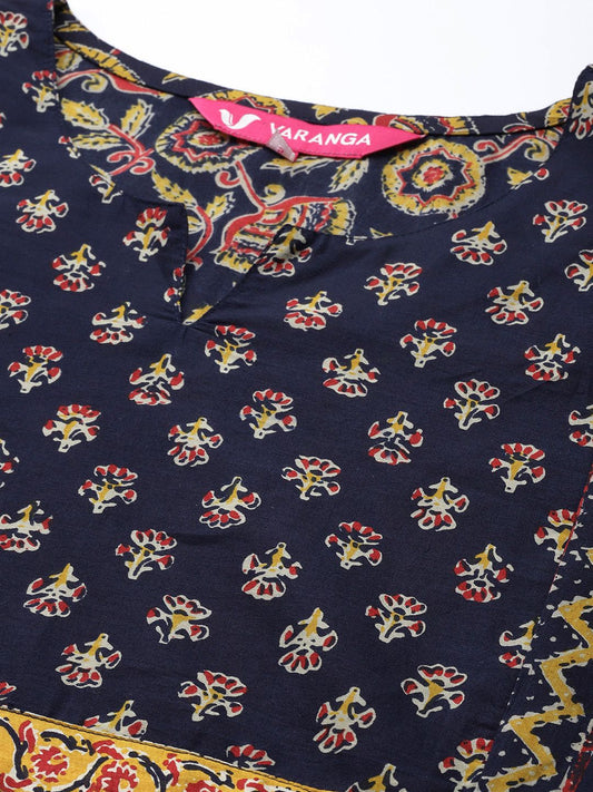 Buy 2 Get 1 FreeVendor:Dhiyona VADhiyona VA Women's Navy Blue Ethnic Motifs Printed Pure Cotton Kurta with Trousers & With Dupatta