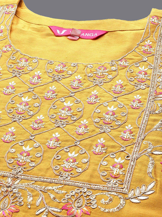 Dhiyona VA Women's Yellow Ethnic Motifs Embroidered Beads and Stones Kurta with Trousers & With Dupatta