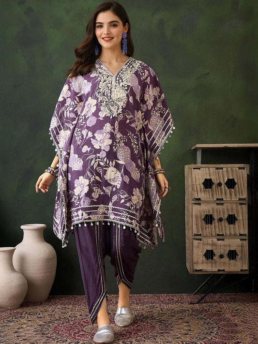 Dhiyona IS Women's Women Printed Kaftan Kurta with Dhoti Pant