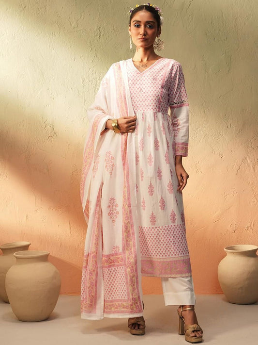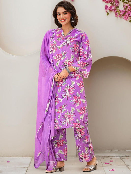 Dhiyona IS Women's Floral Printed Pure Cotton Kurta with Trousers & Dupatta