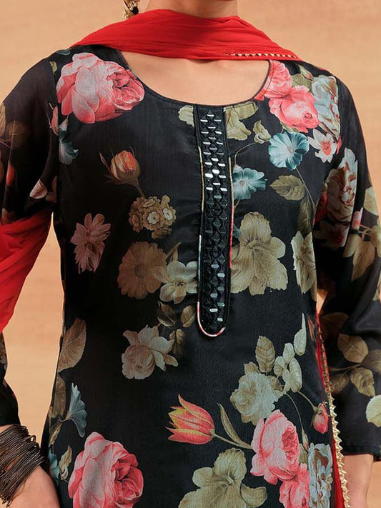 Dhiyona IS Women's Women Floral Printed Regular Mirror Work Kurta Set With Dupatta
