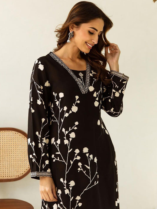 Dhiyona IS Women's Floral Printed V-neck Straight Kurta & Palazzos