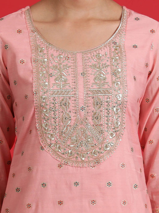 Women's Pink Cotton Blend A-Line Kurta and Pant