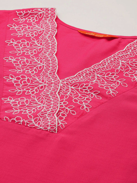 Dhiyona IE Ethnic Motifs Embroidered Thread Work Pure Cotton Kurta with Trousers