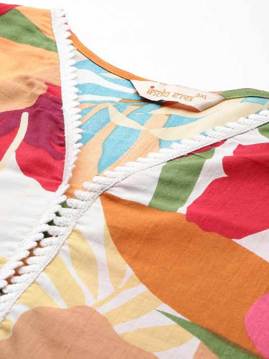 Dhiyona IE Plus Size Floral Printed Pure Cotton Kurta with Trousers