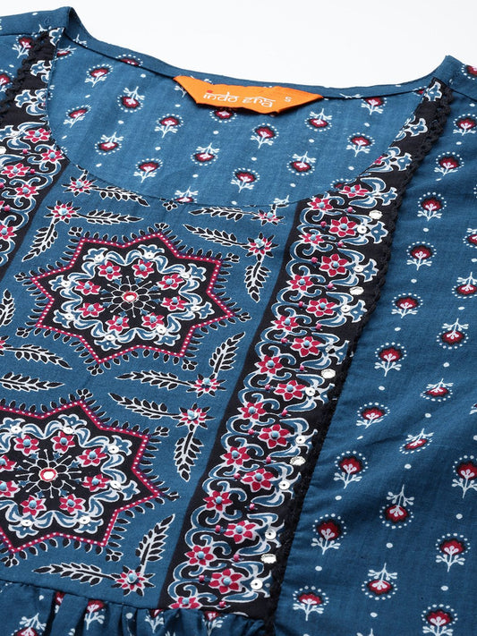 Dhiyona IE Ethnic Motifs Printed Panelled Pure Cotton Kurta with Trousers & With Dupatta