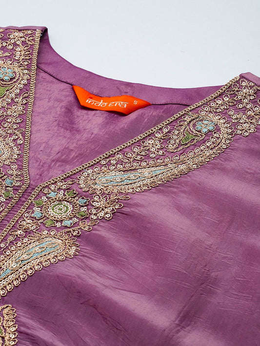 Buy 2 Get 1 FreeVendor:Dhiyona IEDhiyona IE Women Purple Sequinned Kurta with Palazzos & With Dupatta