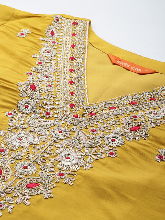 Dhiyona IE Floral Aari Work Embroidered Kurta with Trousers & Dupatta