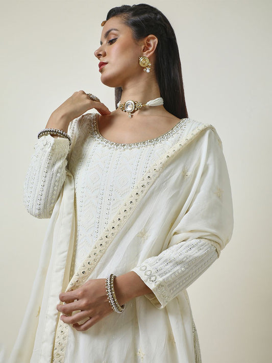 Dhiyona IE Ethnic Motifs Embroidered Regular Sequinned Kurta with Trousers & Dupatta