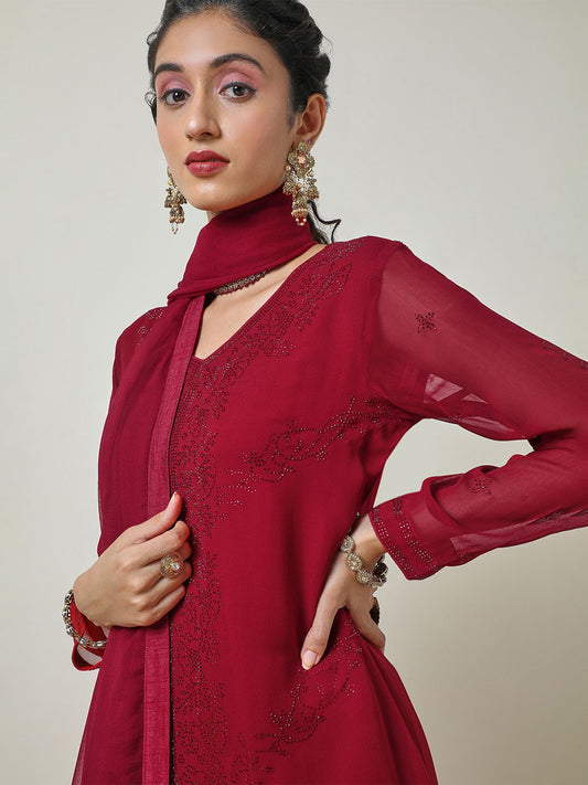 Dhiyona SO Women's Floral Embroidered Beads and Stones Georgette Kurta with Churidar & Dupatta