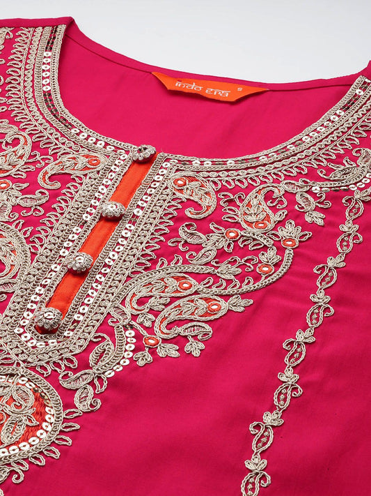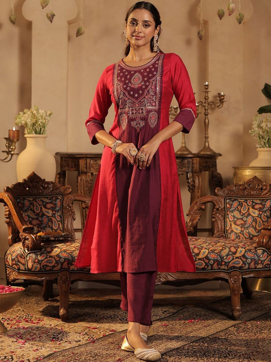 Dhiyona IE Colourblocked Printed Thread Work Chanderi Silk Kurta With Palazzos